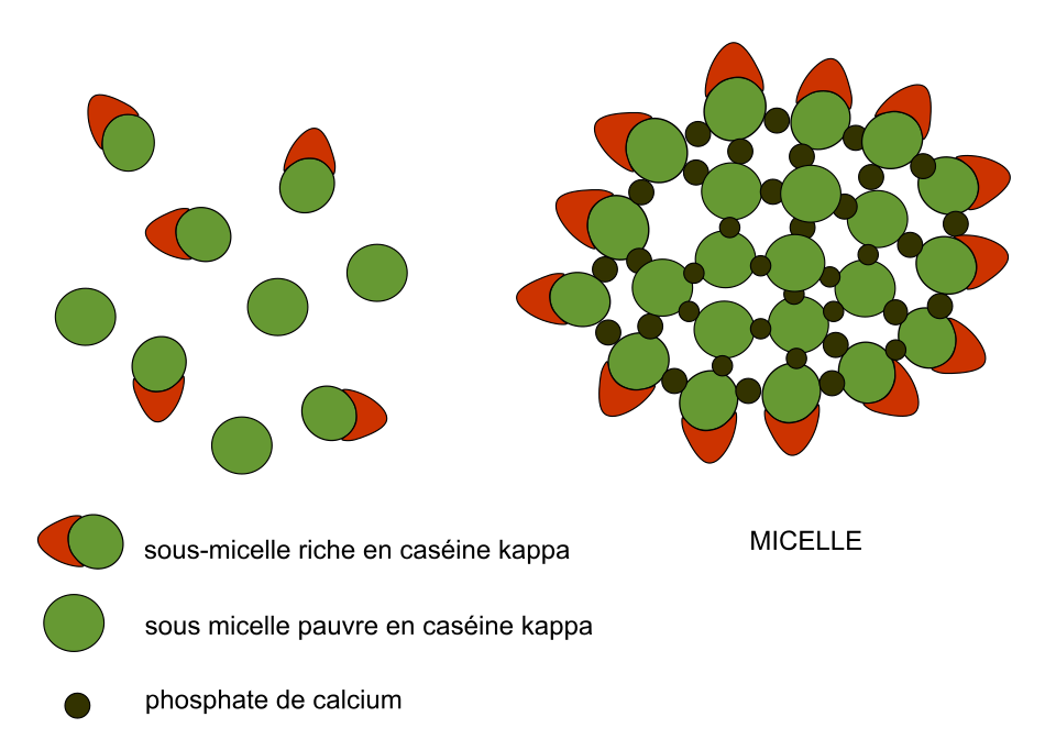 الميسيلات (Micelles) هي تجمعات/ترتيبات طبيعية لجزيئات الكازين في الحليب. ببساطة: الجزء المحب للماء (Hydrophilic) يكون للخارج، والجزء الكاره للماء (Hydrophobic) يكون للداخل. هذا التنظيم هو أحد الأسباب التي تجعل بعض أنواع الكازين تُهضم ببطء وتُطلق الأحماض الأمينية بشكل أطول مقارنةً بالواي—وهذا بالضبط لماذا كثير يستخدمون الكازين قبل النوم أو عند وجود فواصل طويلة بين الوجبات. [6]